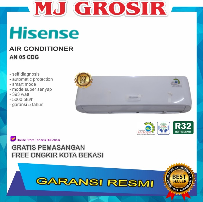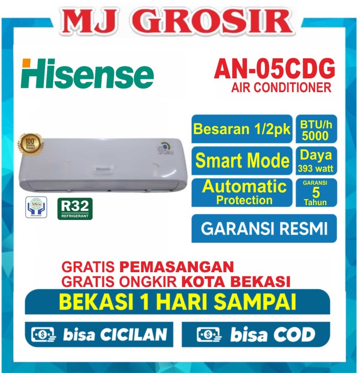 AC HISENSE AN 05 CDG AC 1/2 PK + PASANG R32 AN05CDG LOW WATT - DUS BAWAAN