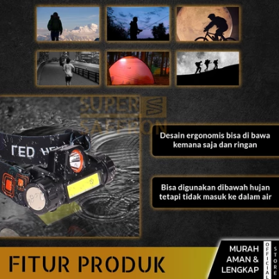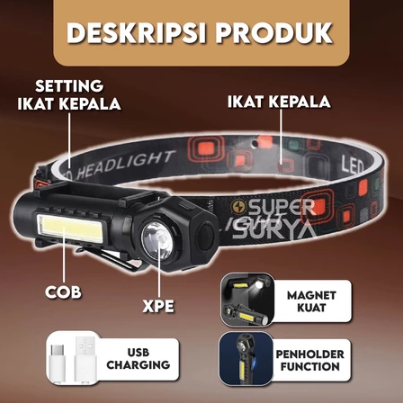 Senter Kepala LED Mini COB XPE Headlamp Bisa Putar Copot Cas USB