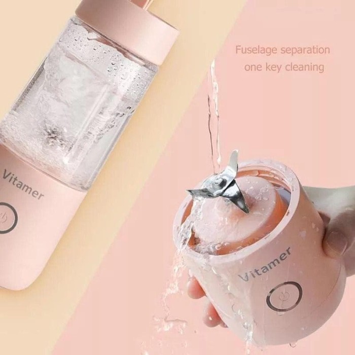 VITAMER BLENDER PORTABLE 350 ML JUICER CUP MINI RECHARGEABLE - MERAH MUDA