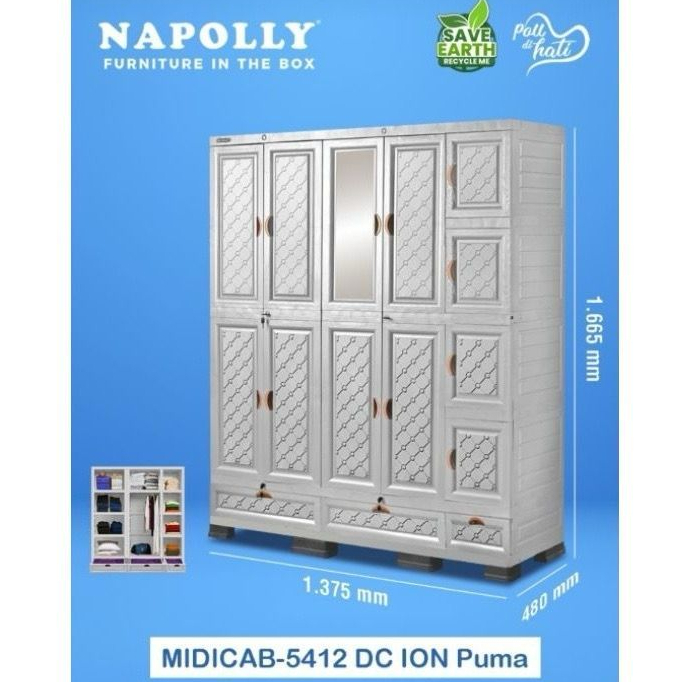 MIDICAB 5412 DC ION PUMA / 4408 / 3408 - Lemari 5p Napolly / Lemari Pakaian Gantung / LEMARI PAKAIAN 5 PINTU CERMIN + LA