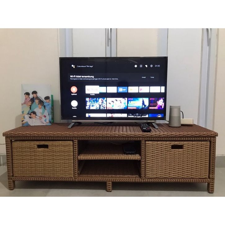 Meja TV Rotan Sintetis Minimalis Modern 2 Laci – Cocok untuk Lemari TV dan DVD