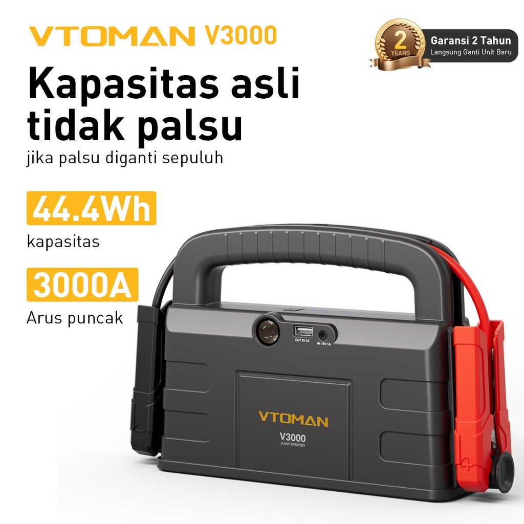 VTOMAN V3000 JUMPER AKI 12000MAH 12V POWERBANK JUMPER AKI MOBIL DAN MOTOR CAR JUMP STARTER MULTIFUNGSI