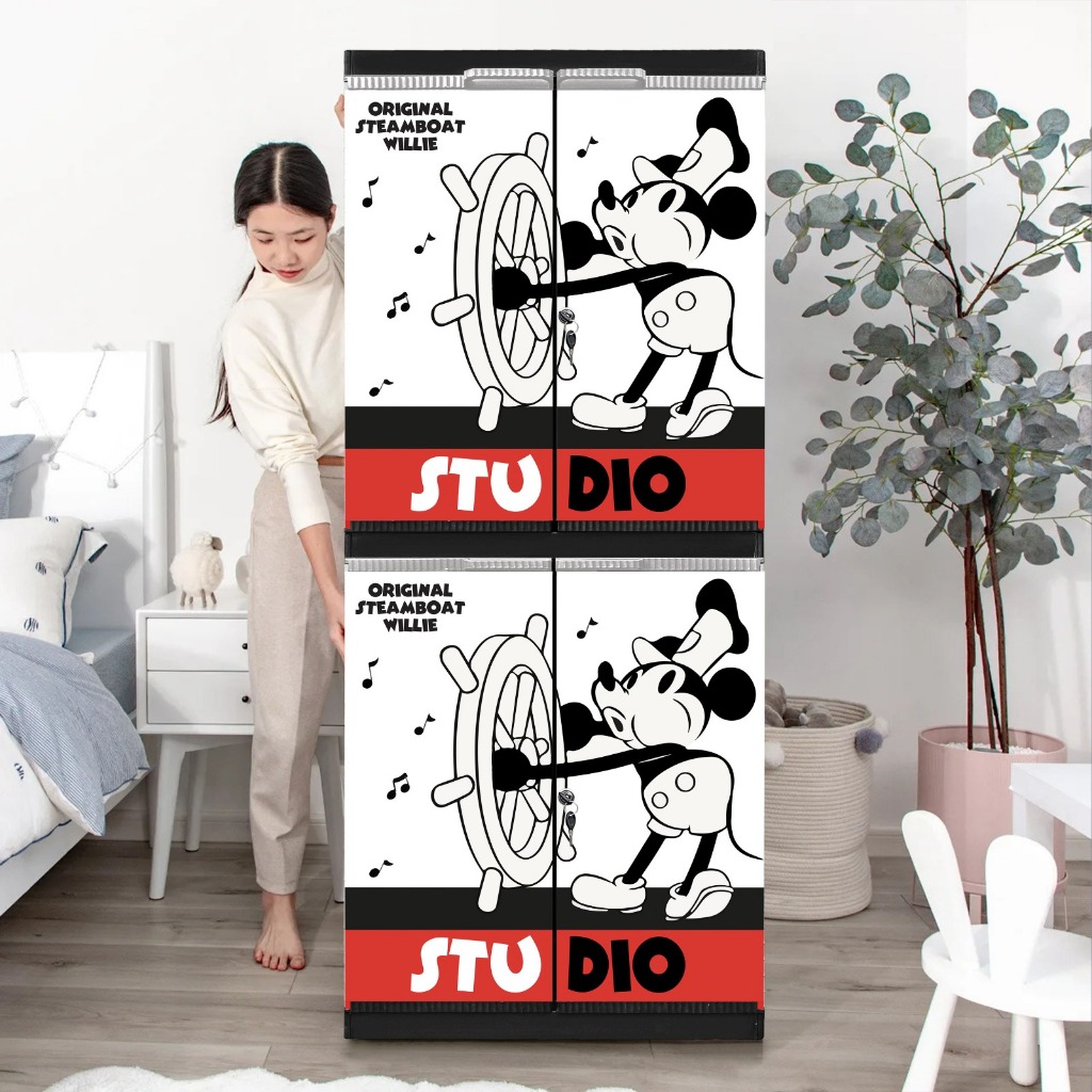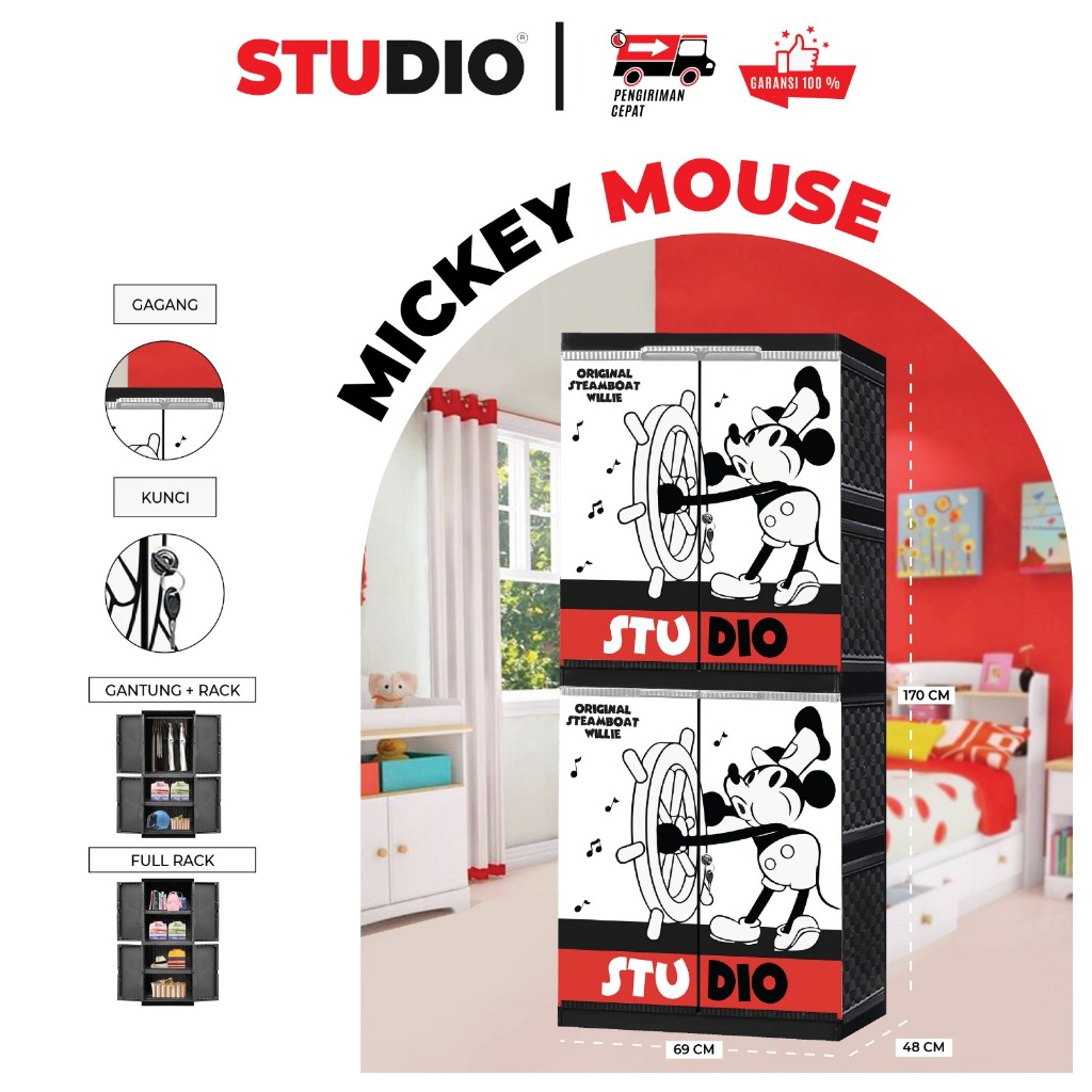 STUDIO - Lemari Pakaian Plastik Jumbo 2 Pintu Gantung + Full Rak + Kaca / Tanpa Kaca MICKEY MOUSE