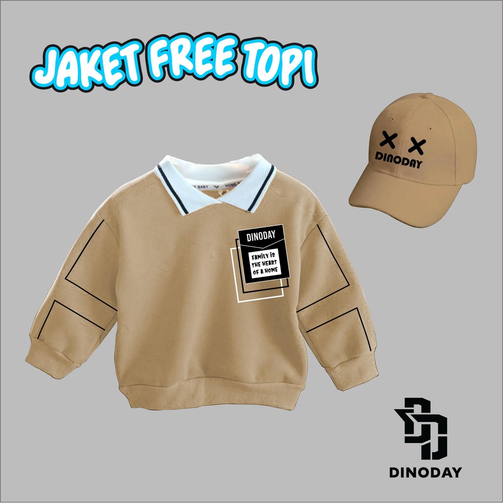 (FLASH SALE) [FREE TOPI] ESTISHOP X DINODAY Jaket Anak Laki Laki Sweater Bayi Unisex Korean Style Crewneck Fleece 1-11