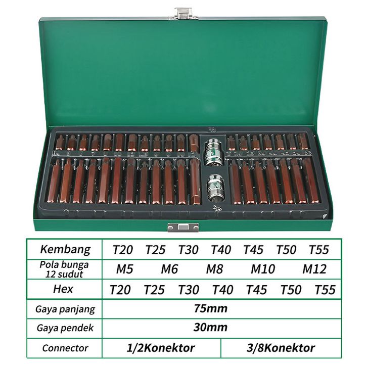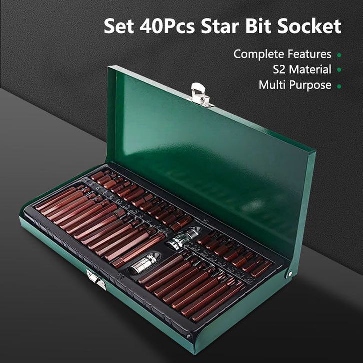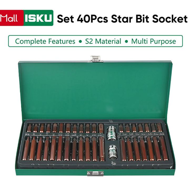 ISKU Star Hex Spline Bit Set 40pcs Mata Kunci Sock L Bintang Drill Bit Set Best Quality Paket Lengkap Garansi Resmi