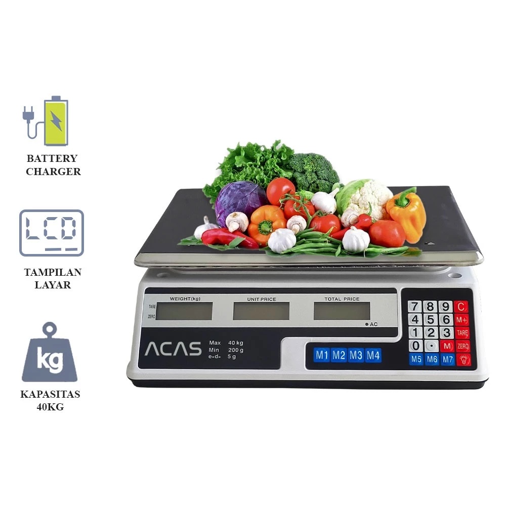 ACS 6208 Timbangan Digital 40 kg / 200 gr Free Charger Elektronik Buah Duduk Laundry Barang Ekpedisi Telur Sembako Elect
