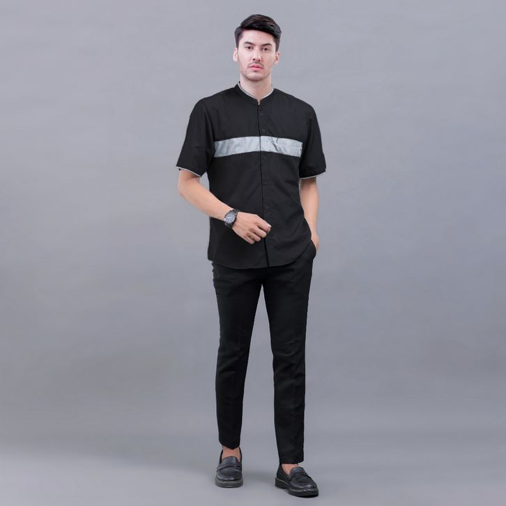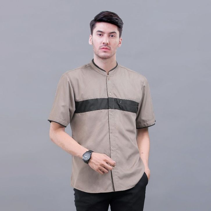 Baju Koko Pria Dewasa Lengan Pendek Motif Hanif Original Elrumi Warna Hitam