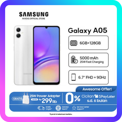 [Mall] SAMSUNG GALAXY A05 4G RAM 6/128 GB BLACK OFFICIAL STORE HP TERBARU 2025 TANPA DP