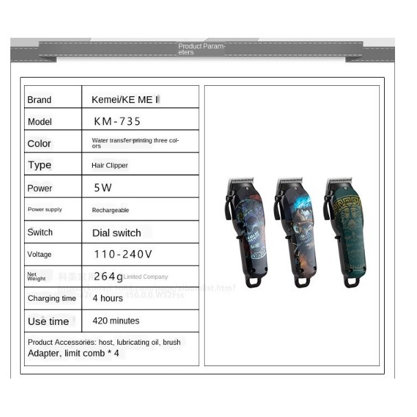 KEMEI KM-735 MESIN CUKUR RAMBUT PROFESIONAL ALAT CUKUR RAMBUT KM 735
