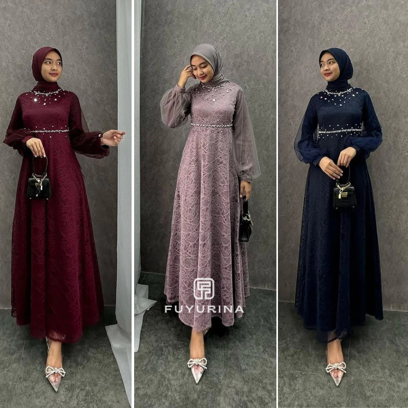 [PROMO] Dress Exclusive Gamis Nadine Lebaran Terbaru Dress Kondangan Gamis Brukat Maxi Pesta Lamaran Tunangan