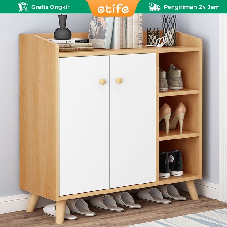 E-TIFE Rak Sepatu Minimalis Lemari Serbaguna Lemari Sepatu Pintu Rumah Kapasitas Besar Lemari Penyimpanan Loker Balkon M