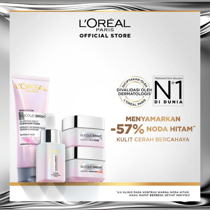 [Mall] L’Oreal Paris Glycolic Bright Glowing 4 Pcs Skincare Kit Untuk Mencerahkan: Serum, Moisturizer, Facial Wash