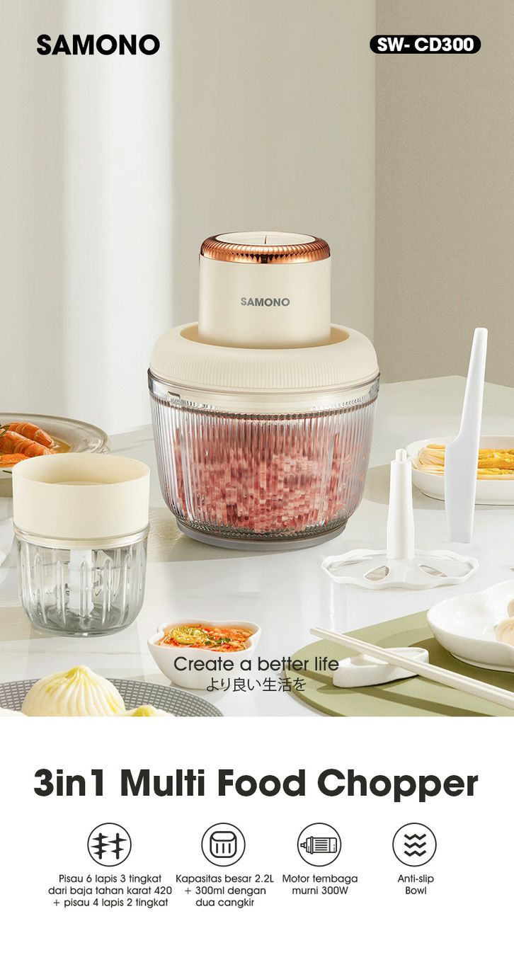 [Star] Chopper 2in1 Kapasitas 2.2L dan 300ml Multifungsi 300 Watt Penggiling Daging SW-CD300