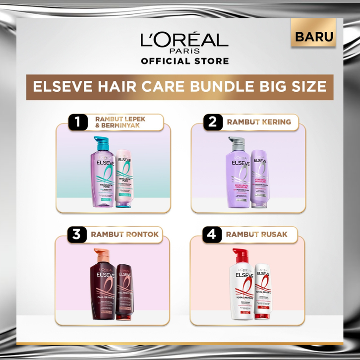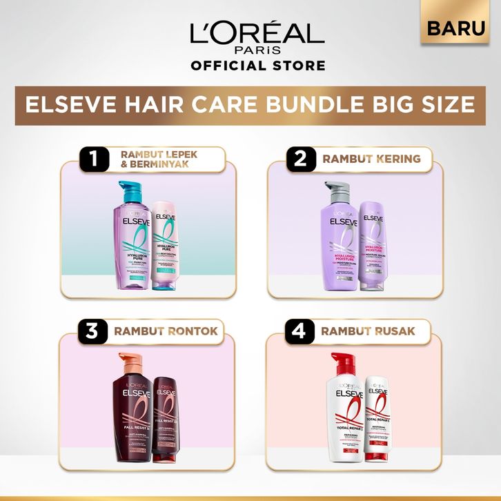 [Mall] [PAKET HEMAT 2PCS] Elseve Hair Care Shampoo + Conditioner Perawatan Rambut Kering, Rontok Rusak Lepek & Berminyak
