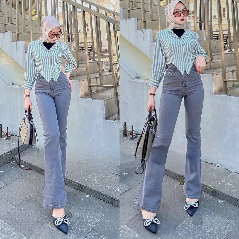 Cutbray Jeans Wanita Highwaist Strecht Viral Kekinian - HW Celana panjang wanita Cutbray Jeans Denim Korean Style Flared