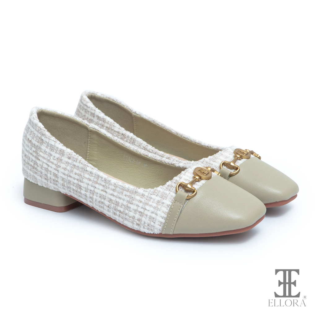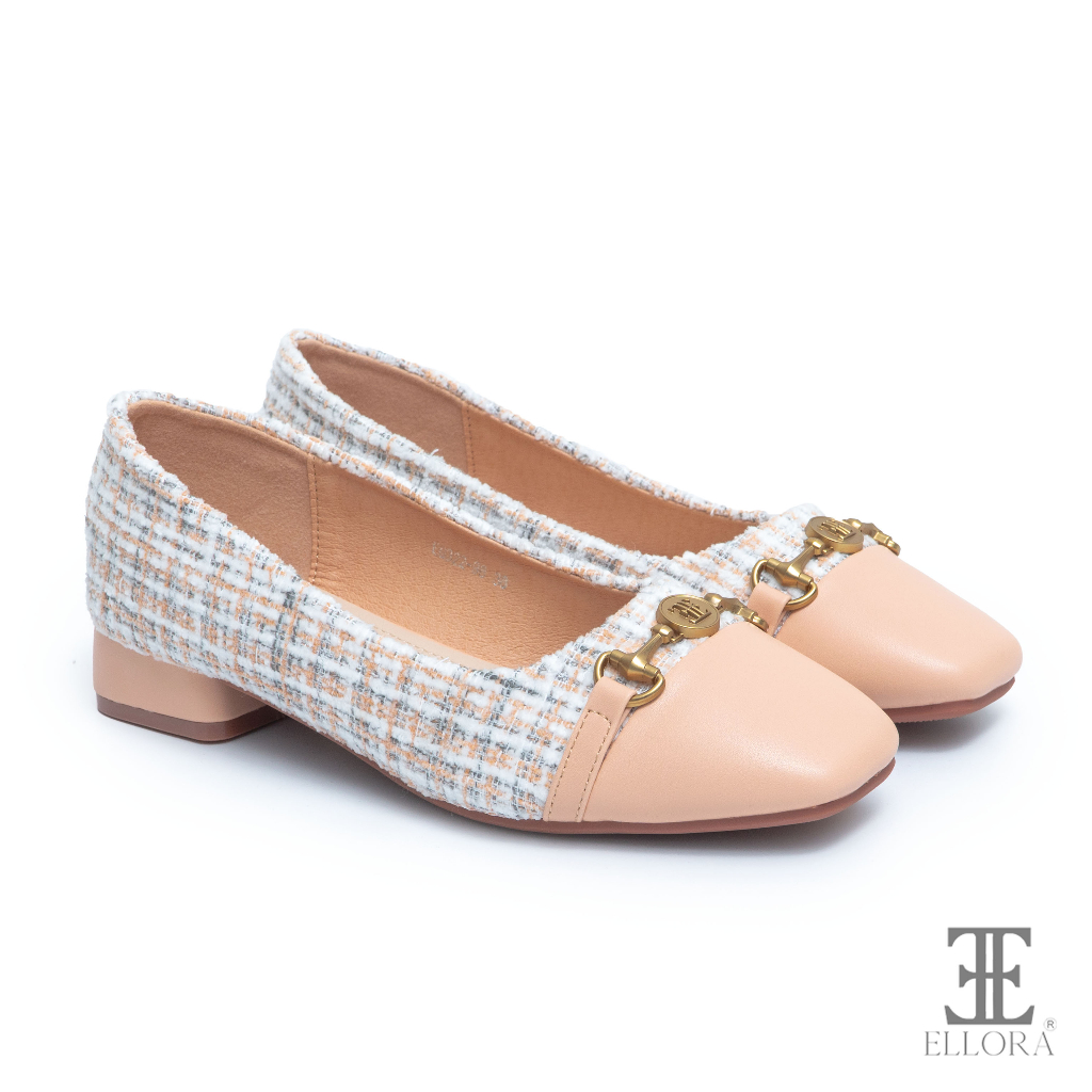 ELLORA EG 322-98 Sepatu Pantofel Wanita Hak Chunky Heels 2.5cm Bahan Tweed