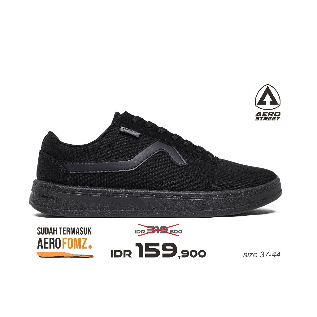 Aerostreet 37-44 Massive Low 2.0 All Black - Sepatu Sneakers Casual