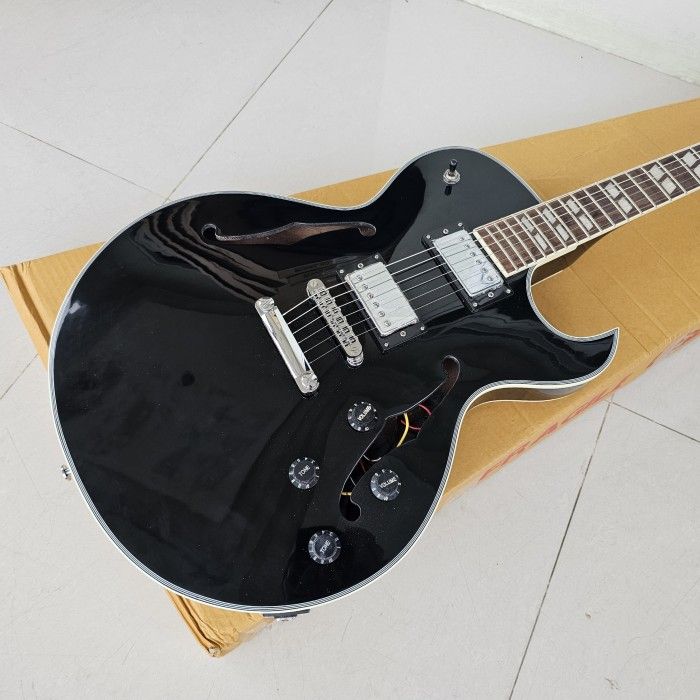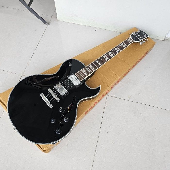 Gitar Gibson semi hollow body custom High Quality preorder Hitam Packing biasa