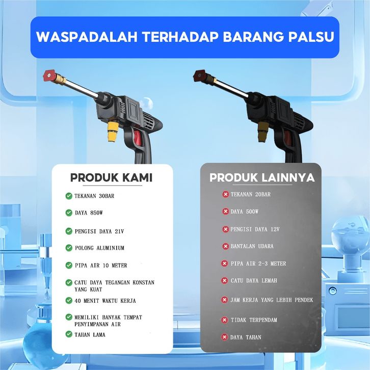 Mesin Cuci Mobil Jet Cleaner Tekanan Tinggi Portable Alat Steam Pembersih Semprotan Motor Tanpa Kabel Listrik Nirkabel