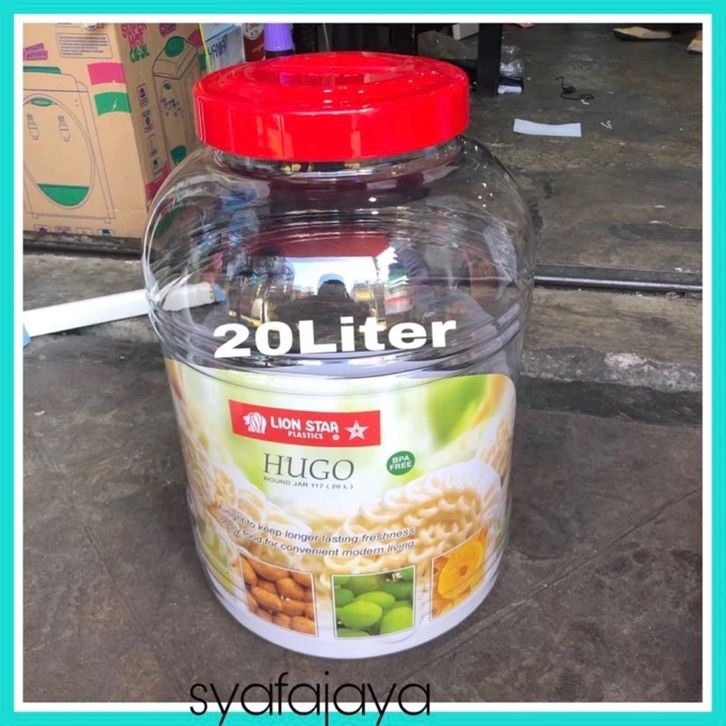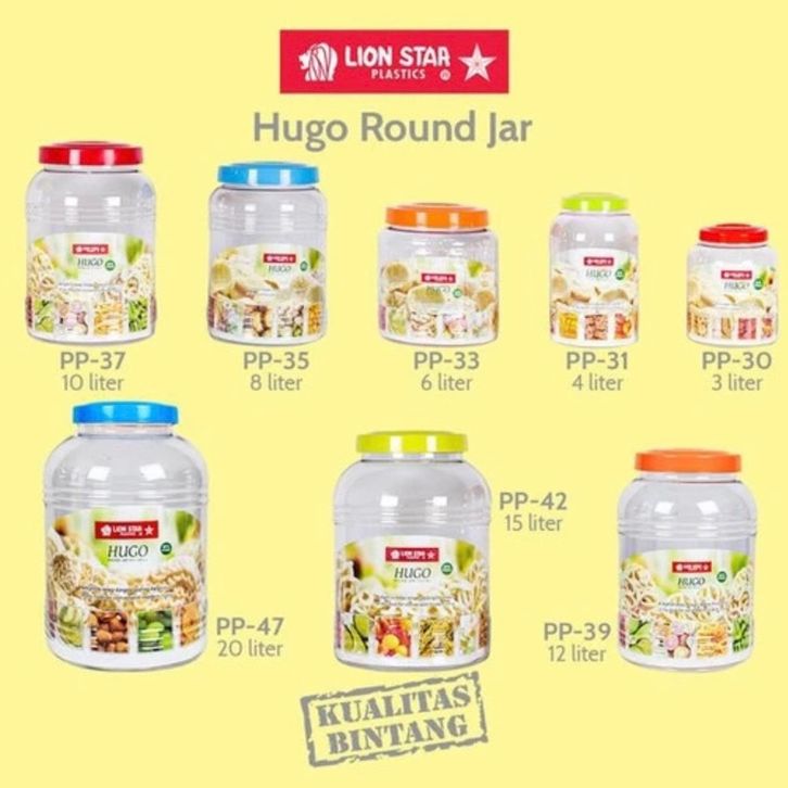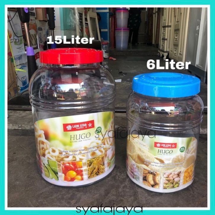 LION STAR - Hugo Round Jar Square Jar Toples Plastik Toples kerupuk 3-4-6-9-10-15-20 Liter TERBARU
