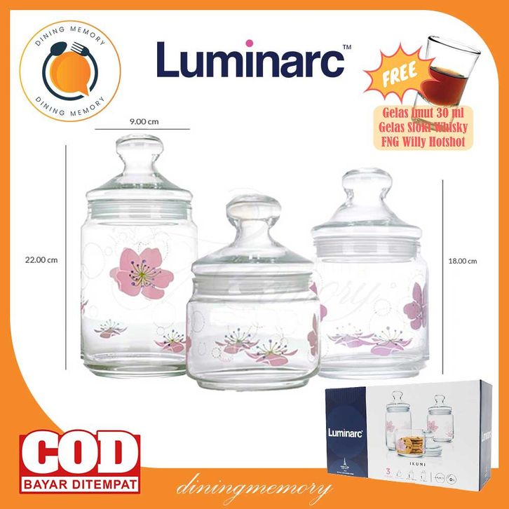Luminarc Toples Kaca Bunga Ikumi Jar Set - 3 PcsSet TERBARU 2025