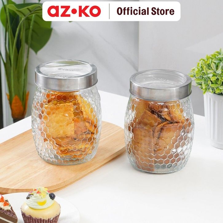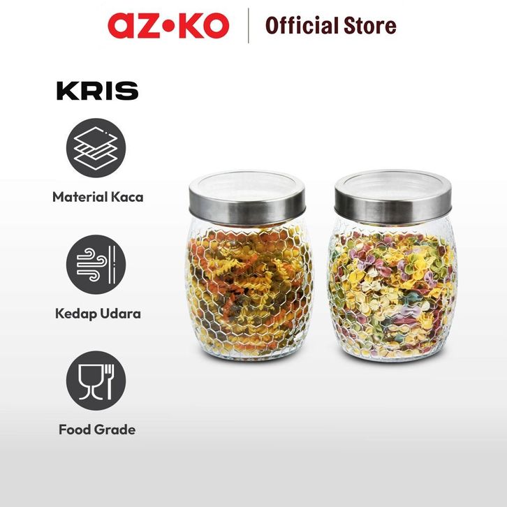Krishome Set 2 Pcs Stoples Kaca Jar Tempat Simpan Snack Dan Permen Setoples Toples Beling Serbaguna
