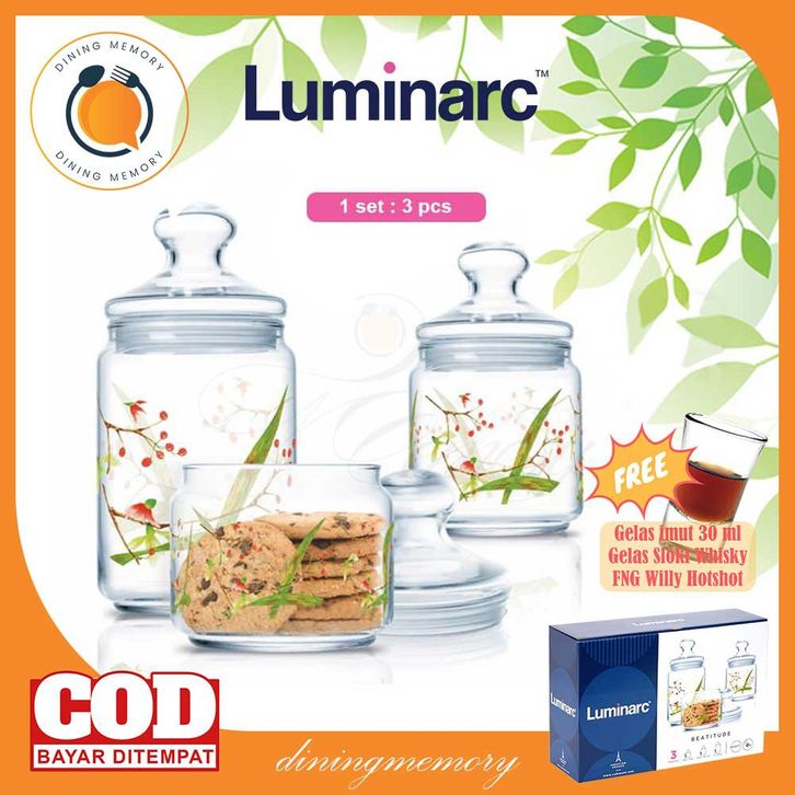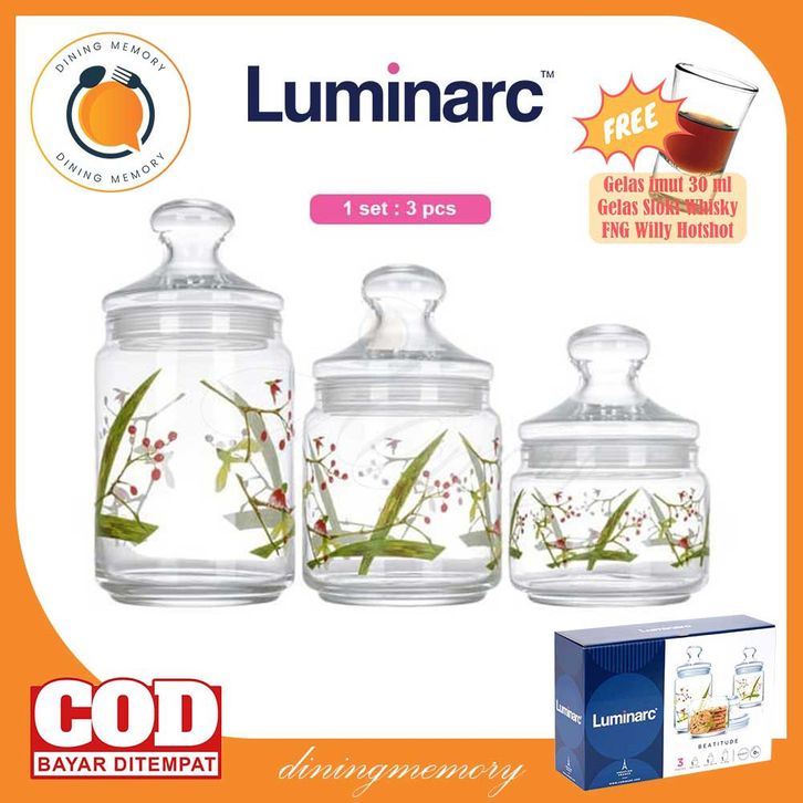 Luminarc Toples Kaca Beatitude Club Jar Set - 3 PcsSet TERBARU 2025