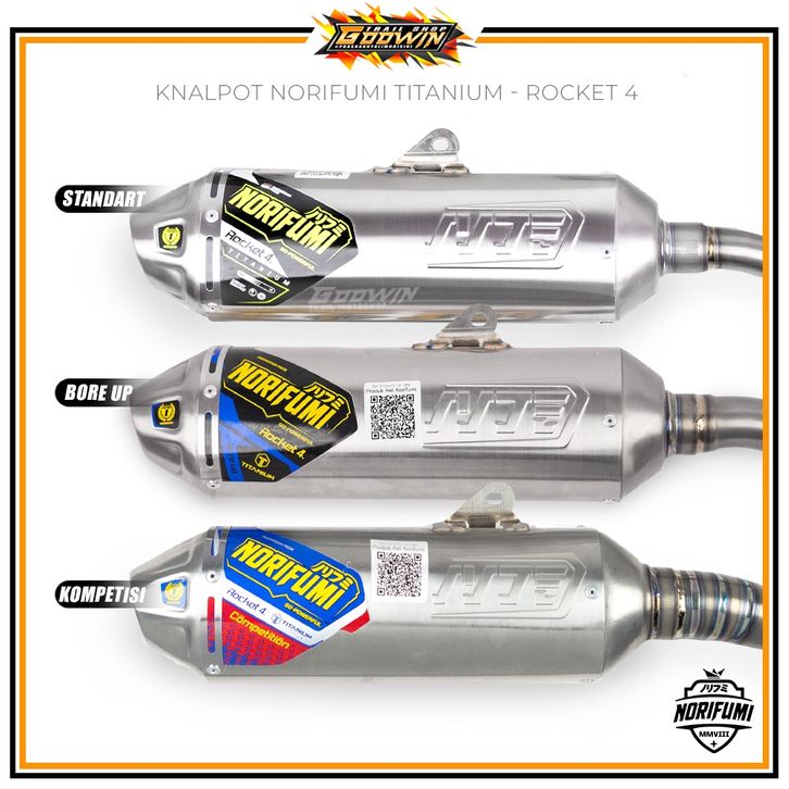 Knalpot NORIFUMI ROCKET 4 TITANIUM KOMPETISI BORE UP SE KLX 150 BF DT / KLX 140 BUILT UP CRF 150 L WR 155 R