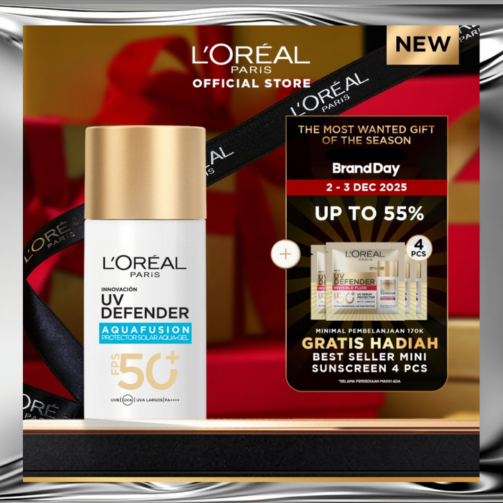 [Mall] [NEW LAUNCH] L’Oreal Paris UV Defender Aquafusion Daily Water Gel Sunscreen SPF50+ PA++++, Sunscreen Seringan Air