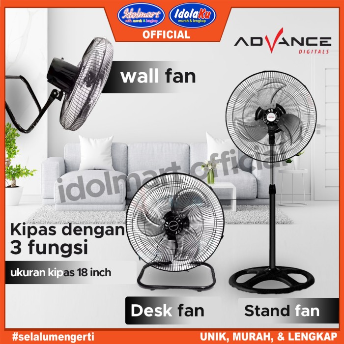 KIPAS ANGIN TORNADO BESI ADVANCE 3 IN 1 18 INCH GARANSI 1 TAHUN