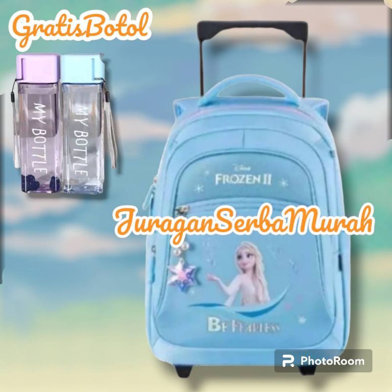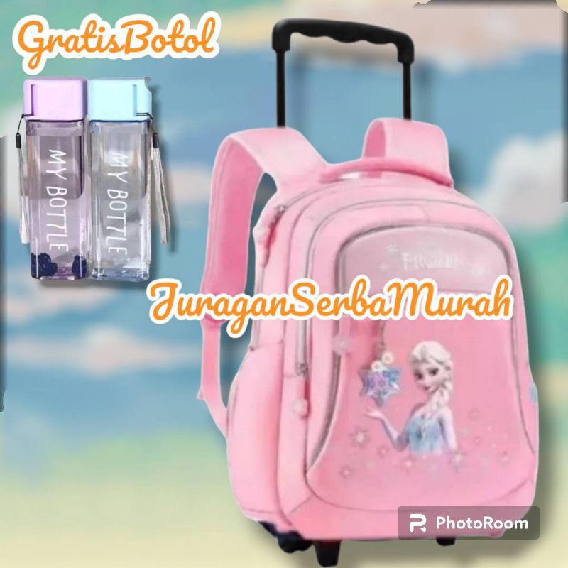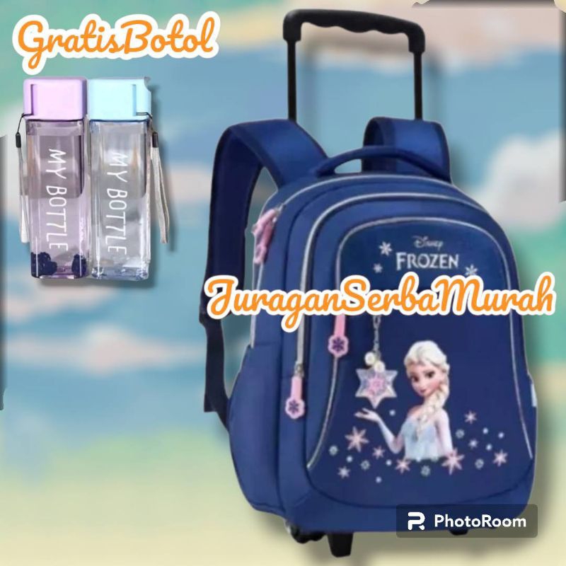 TAS TROLI TAS DORONG ANAK PEREMPUAN TK SD KARAKTER FROZEN GRATIS BOTOL