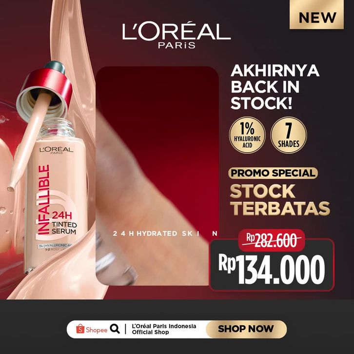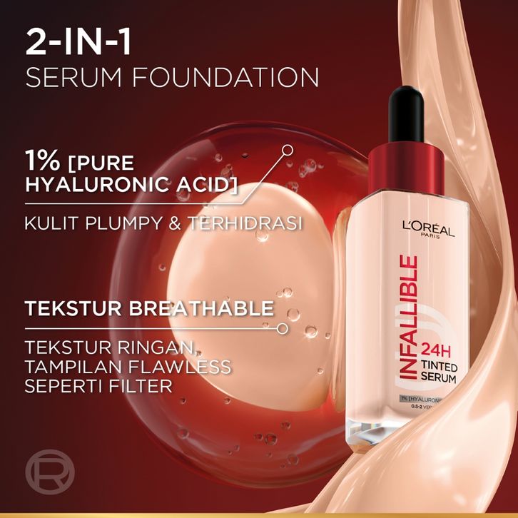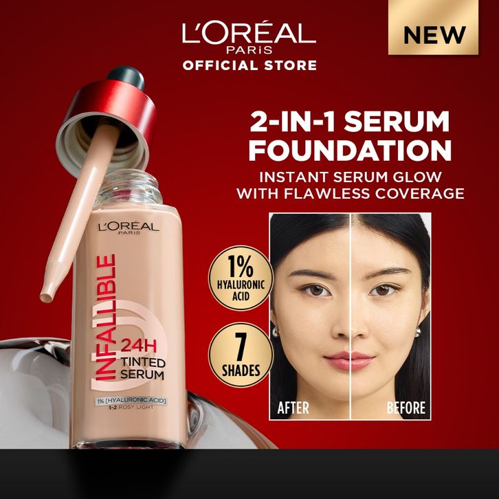 [Mall] [BARU] L'OREAL PARIS INFALLIBLE 24H TINTED SERUM FOUNDATION LIGHTWEIGHT BREATHABLE RINGAN TAHAN HINGGA 24 JAM