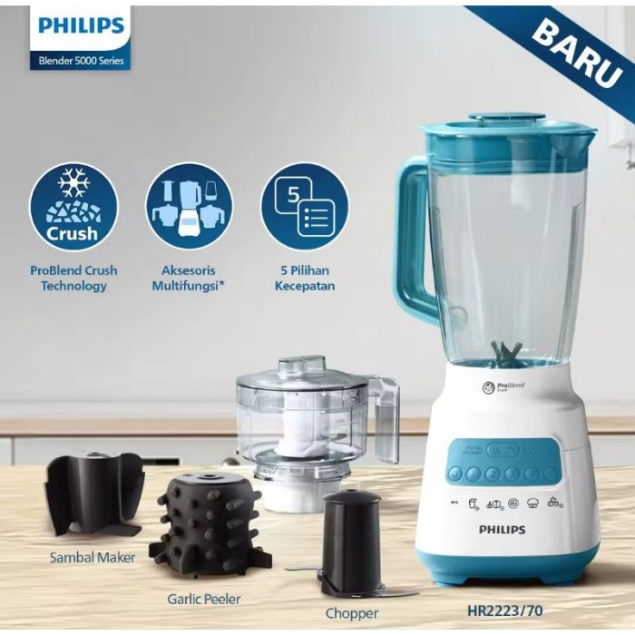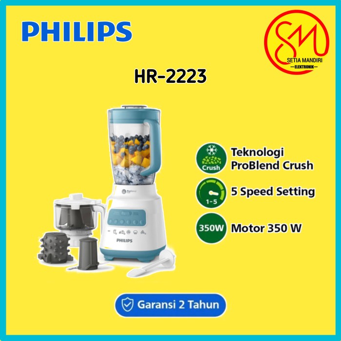PHILIPS BLENDER 2L PLASTIK + MULTI ACCESSORY HR2223 HR 2223 - HR2223 BIRU SM