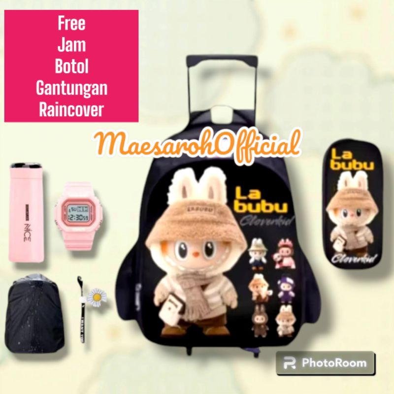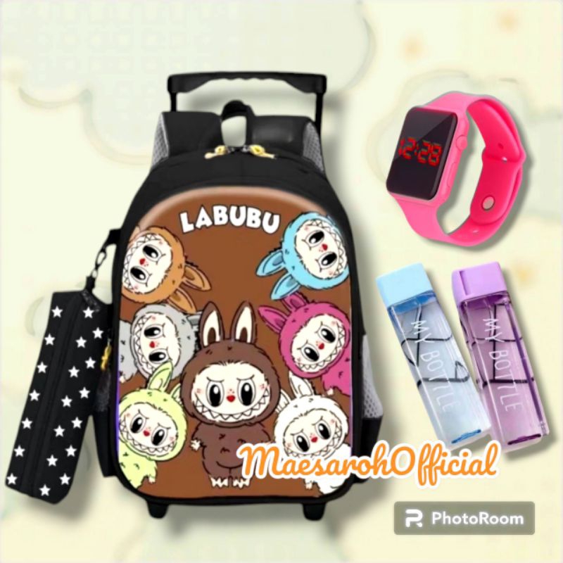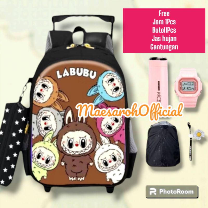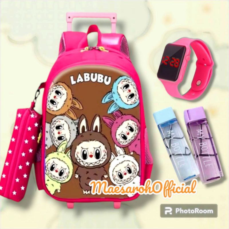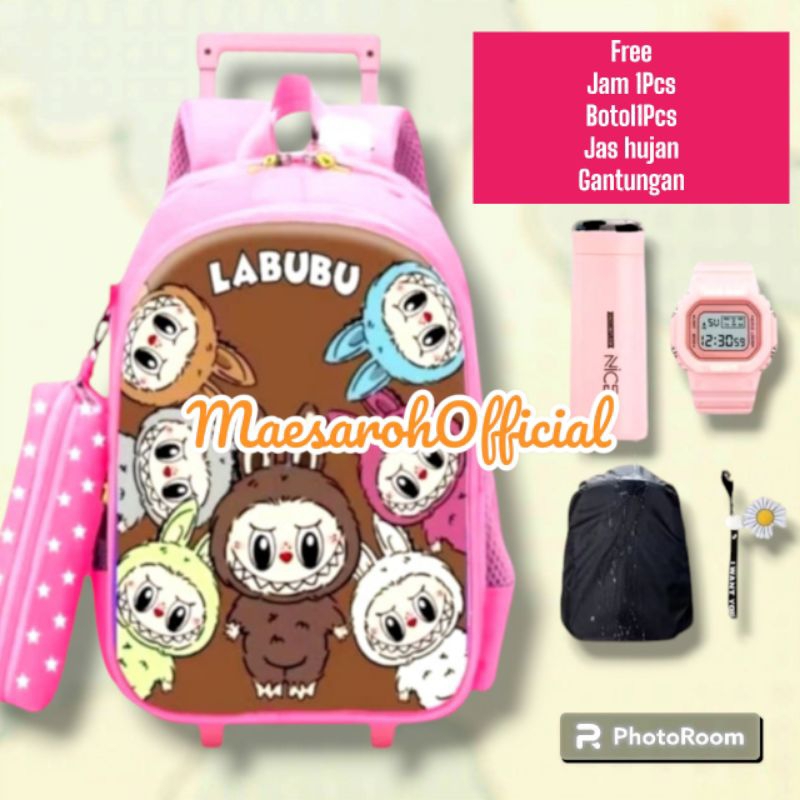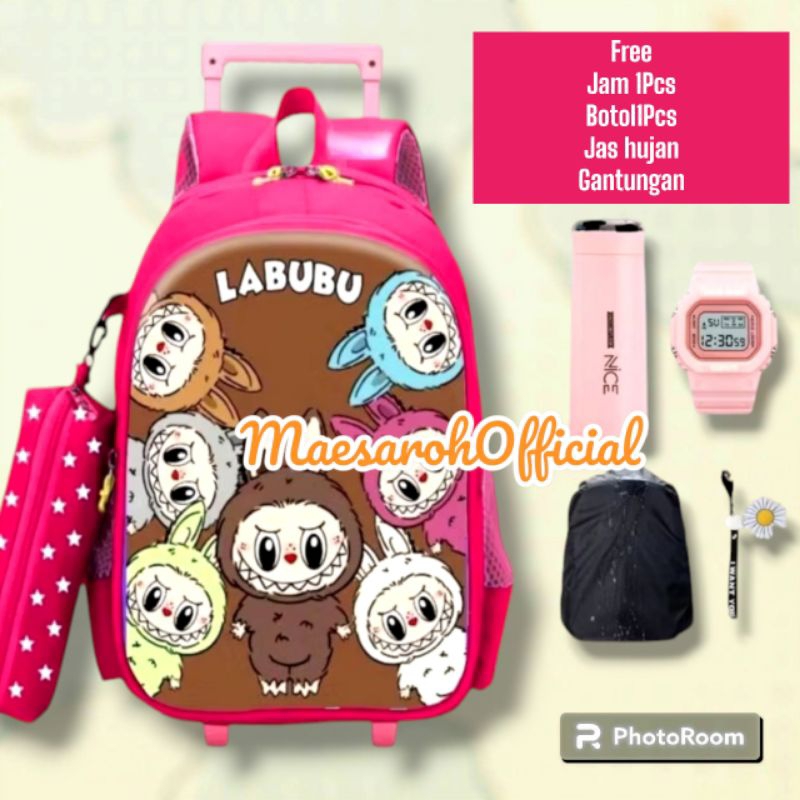 TAS TROLI LABUBU TAS DORONG ANAK PEREMPUAN SEKOLAH DASAR KARAKTER LABUBU