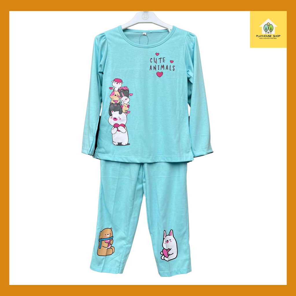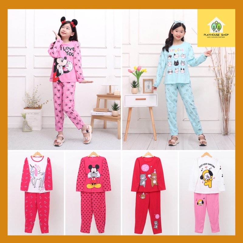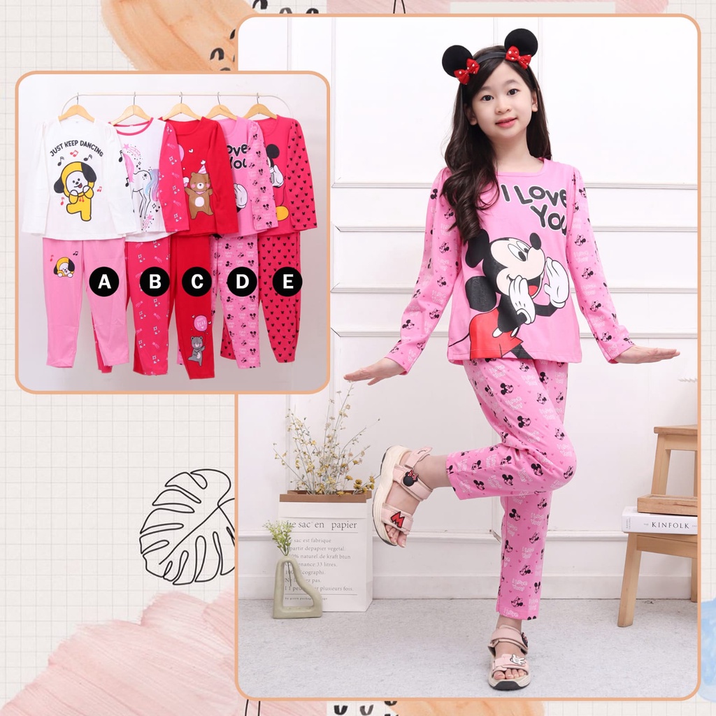 SETELAN BAJU TIDUR KAOS PIYAMA ANAK PEREMPUAN 3-12 TAHUN TERBARU