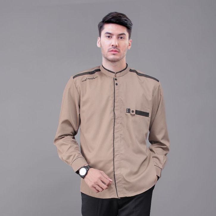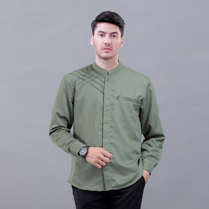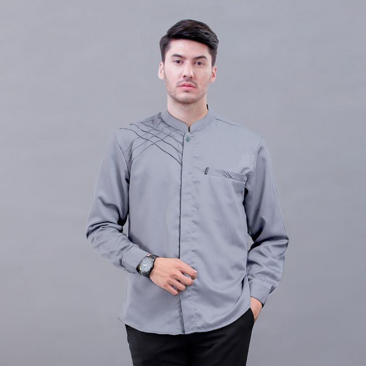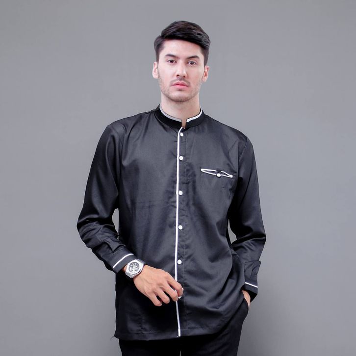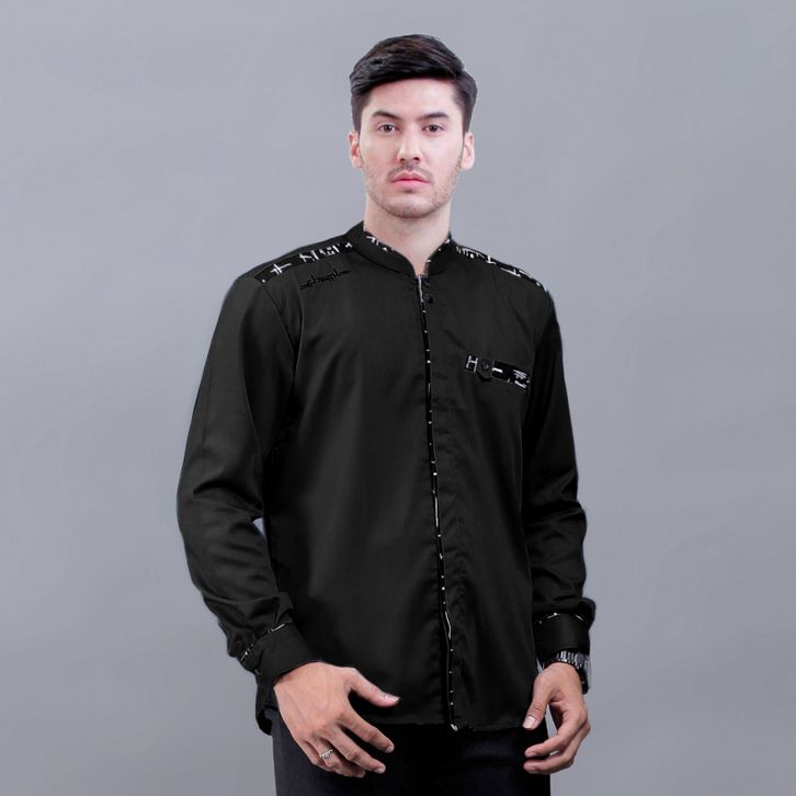 Baju Koko Pria Elrumi Lengan Panjang Motif Yisunsin Warna Putih