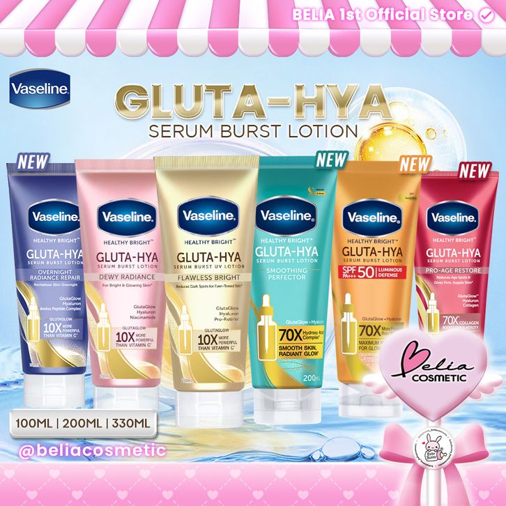VASELINE Healthy Bright Gluta-Hya Serum Burst Lotion Series | 200ml | Luminous Defense SPF 50 | Dewy Radiance | Flawles