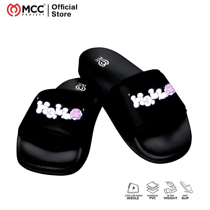 Terbaru Sandal Slop Slip On Slide Hallo Black Sendal Pria Wanita Dewasa Casual Size 38-43