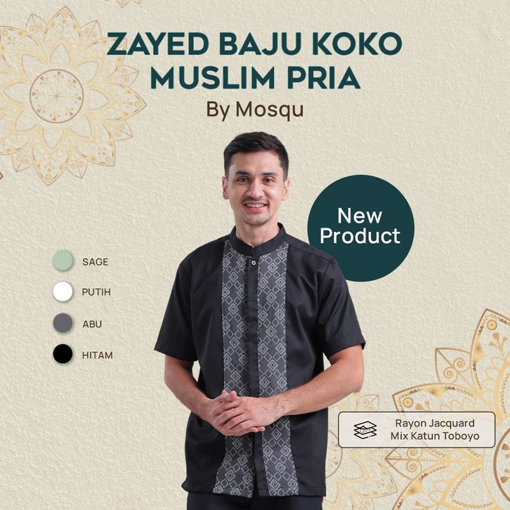 Mosqu Zayed Baju Koko Pria Dewasa Modern Lengan Pendek Motif Tenun