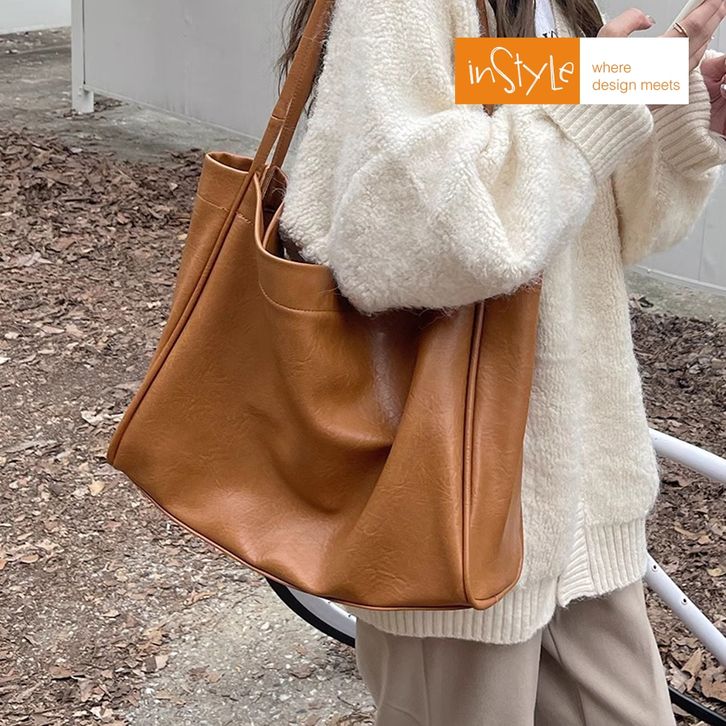 Tas Bahu Tote Bag Wanita Korean Style Shoulder Bag Kulit PU Lembut Size Besar T2-046 Tas Kulit Wanita Kekinian