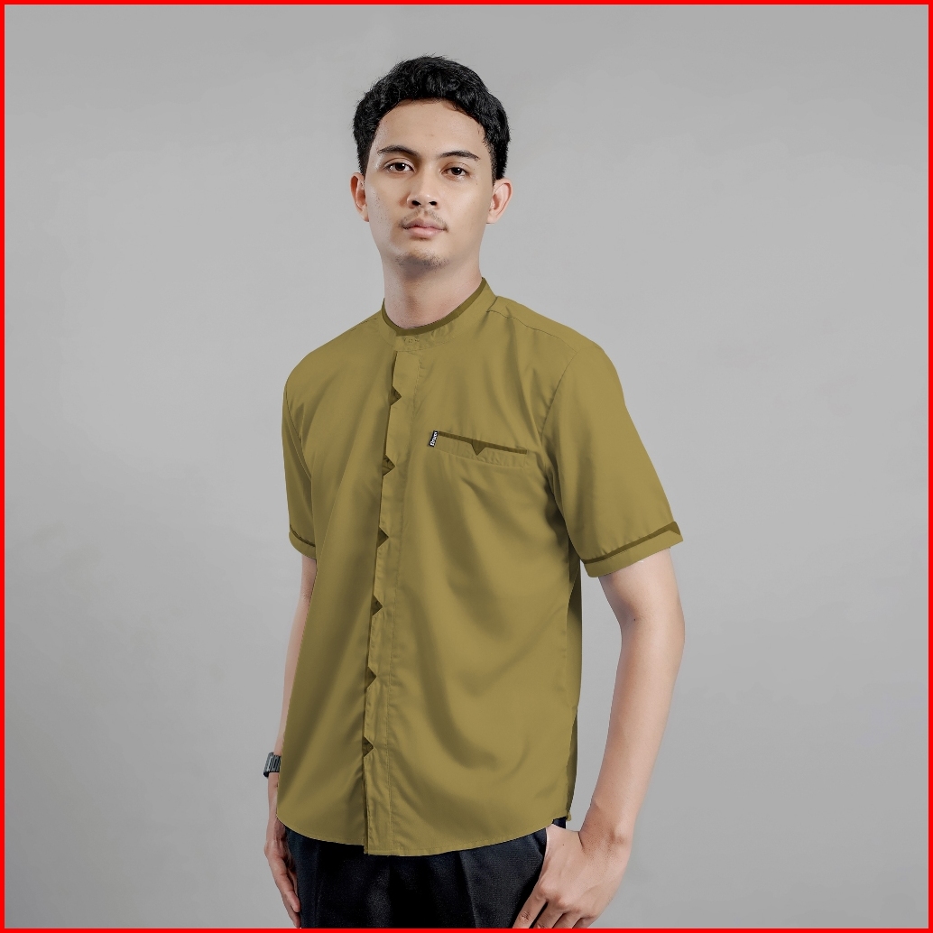 Baju Koko Pria Elrumi Lengan Pendek Motif Shaka Warna Olive