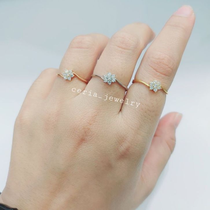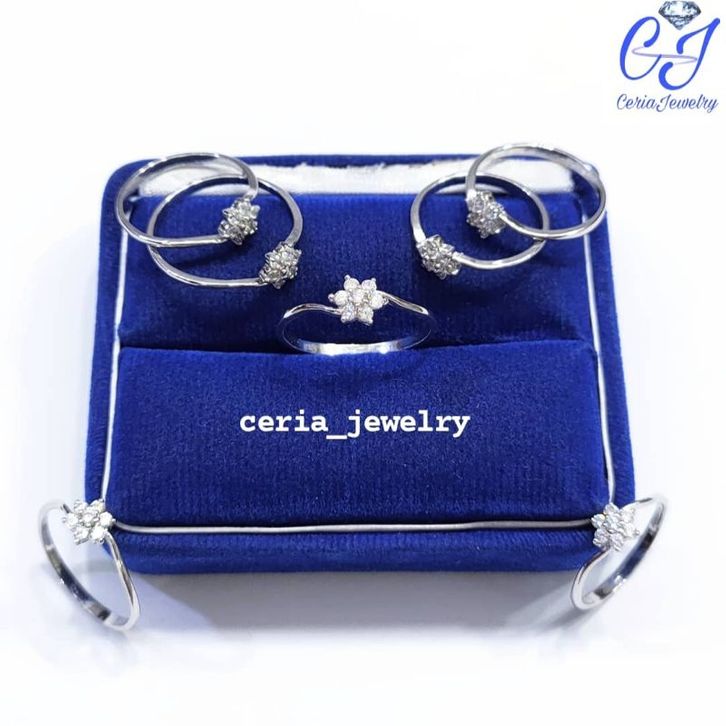 Cin cin Perak Wanita Asli Silver 925 Lapis Ems Putih Model Bunga Pertama Kilau - Cin cin Anti Karat