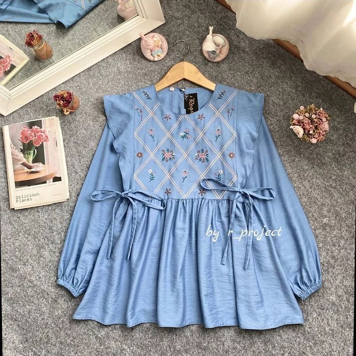 Atasan Wanita Bordir Kekinian Maomao Blouse Polo Linen Mix Bordir Best Seller