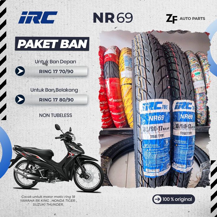 BAN LUAR MOTOR BEBEK / BAN IRC RING 17 / SEPASANG/SATUAN BAN IRC NR69 NON TUBELESS SUPRA VEGA KARISMA VEGA