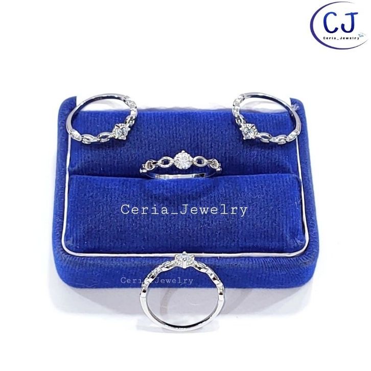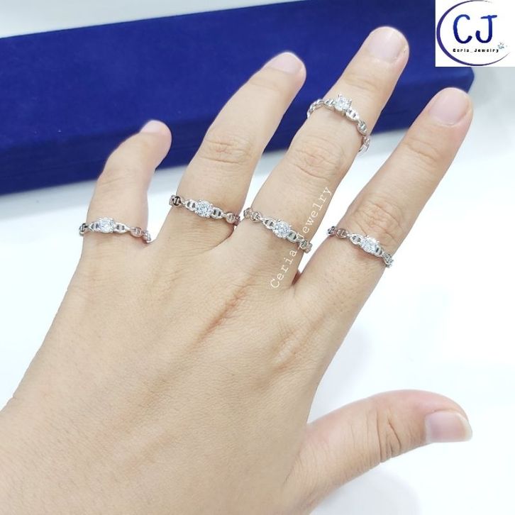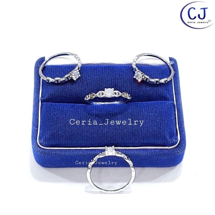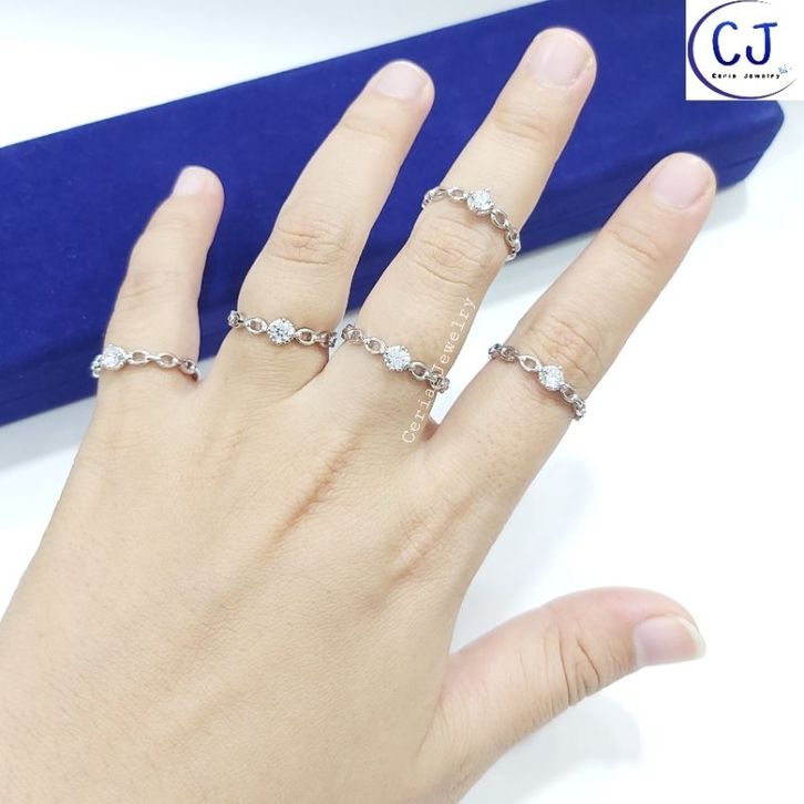Cin cin Perak Asli Silver Wanita 925 Lapis Ems Putih Model Soliter Variasi Polos Samping - Perhiasan Perak Asli