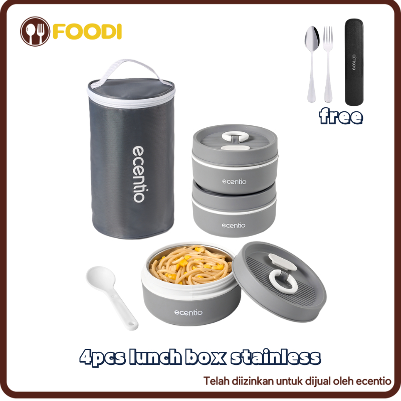 Tempat Makan Bekal Anak Stainless set Bento 300ML Portabel 304 Tahan Bocor Tahan Panas Anti Tu 【4pcs】ecentio