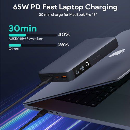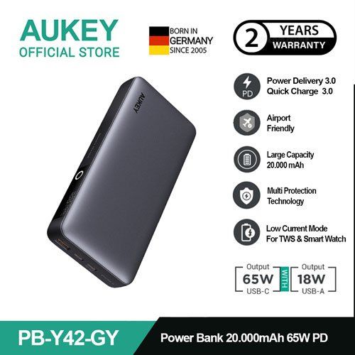 AUKEY Powerbank 20000mah PB-Y43-GY USB C 65W PD 3.0 Slim Original Official Store