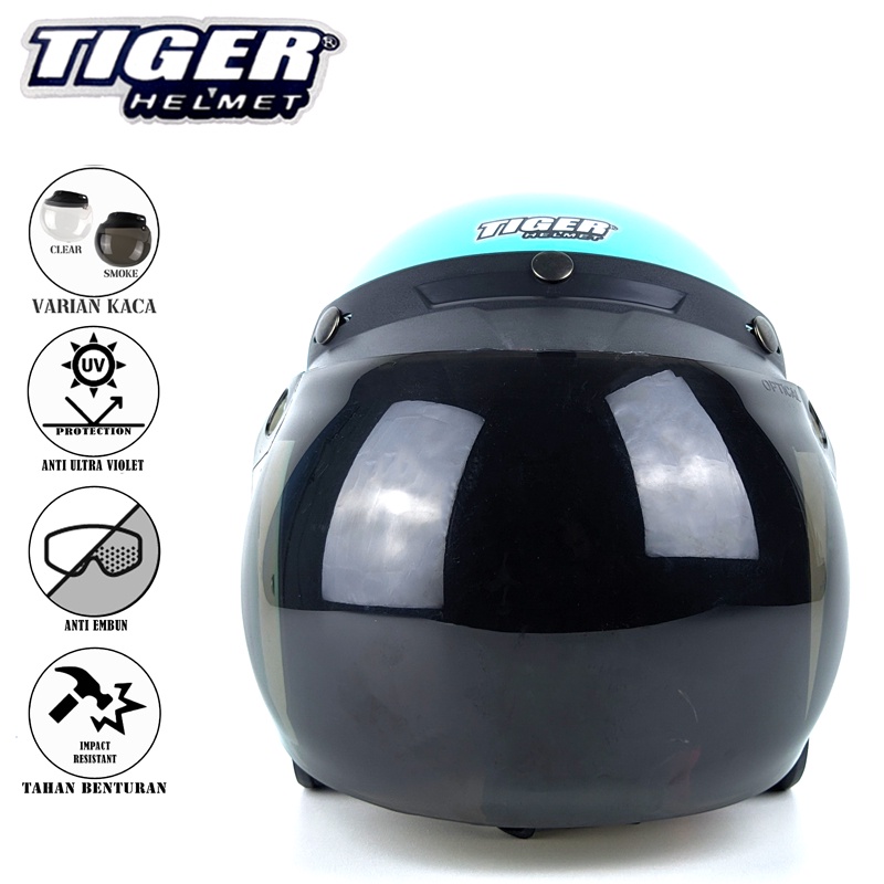 Tiger Helmet Helm Bogo Retro Dewasa SNI List Classic Polos Free Aksesoris Kaca Cembung