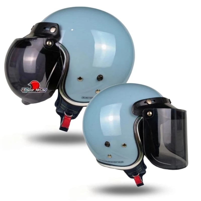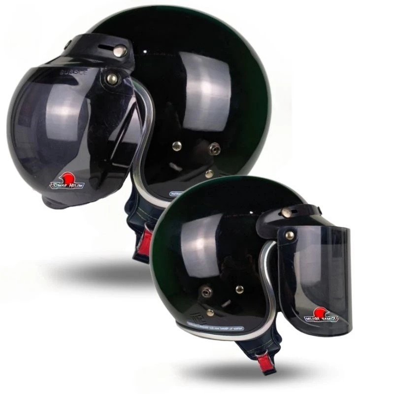 (LC) HELM BOGO DEWASA NO1 KACA DATAR HITAM - HELM bogo retro dewasa full leher SNI 1 pria wanita