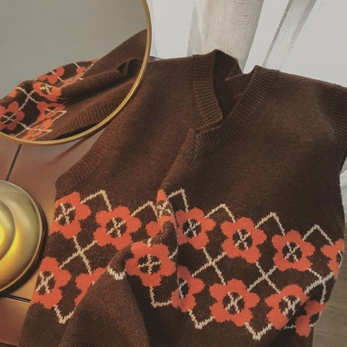 IMmesenRT FLOWERY WOMAN TEEN KNIT WOOL VEST OUTER KOREA ROMPI RAJUT CEWE
